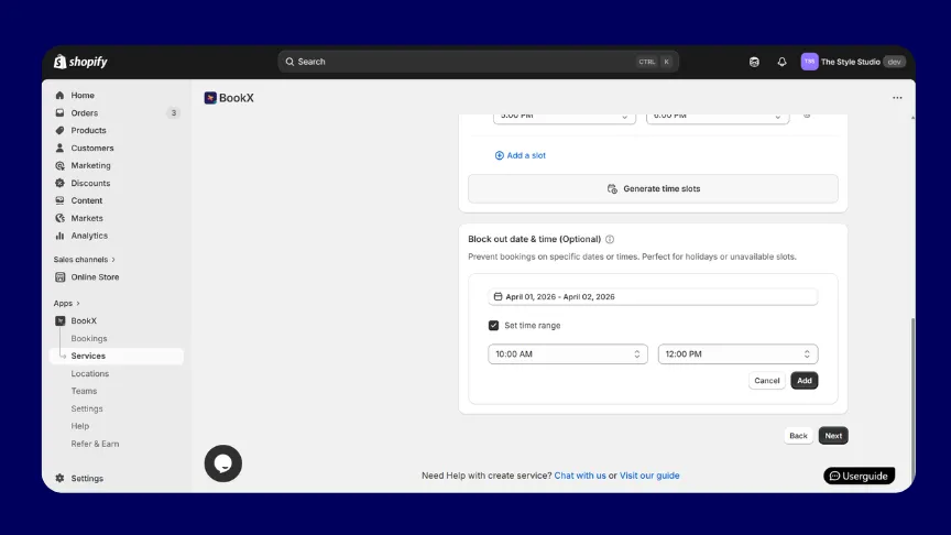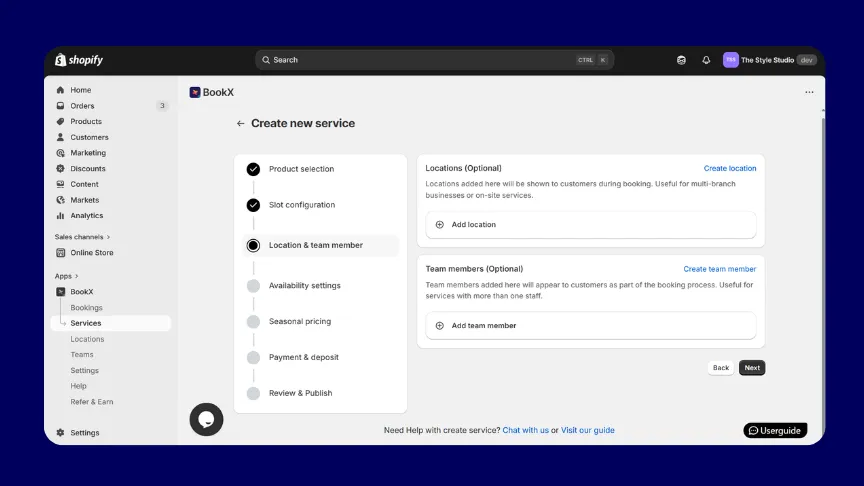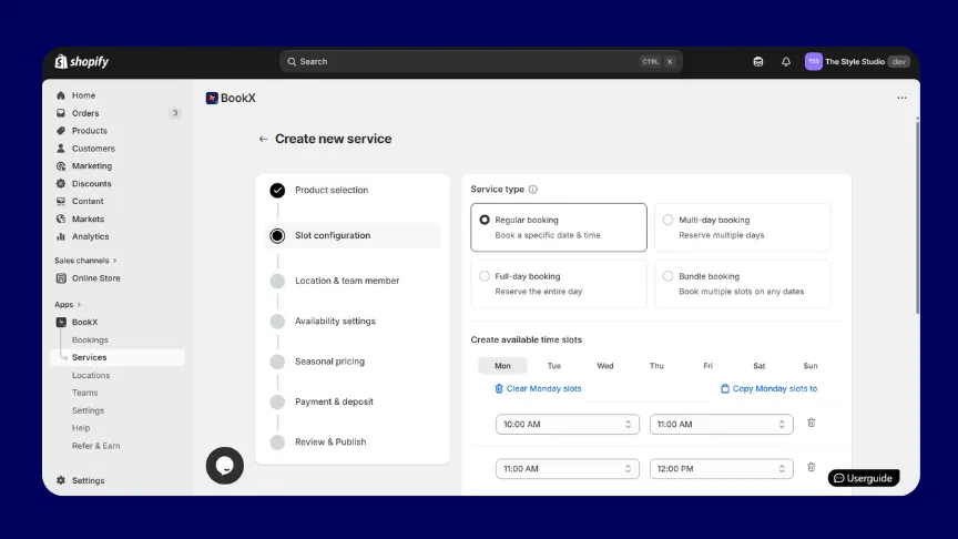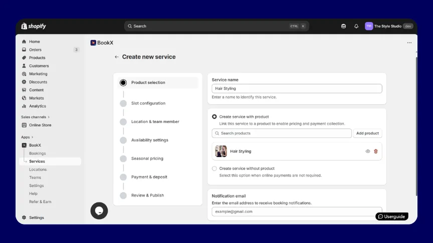 Shopify doesn't include native scheduling, but you can add a full scheduling system by installing a Shopify scheduling app like BookX. Once installed, you can manage staff schedules, set availability windows, control booking slots, and sync everything to Google Calendar.