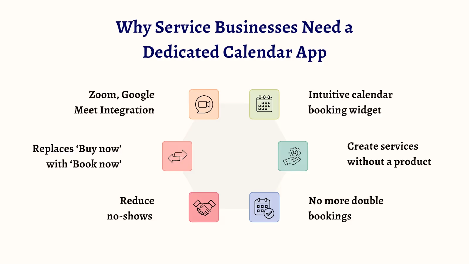 Imagine a customer wants to book a 1-hour consultation. Without a calendar app, they purchase a ‘product’ on your store. Then, you have to email them to find a time. You go back and forth three times.