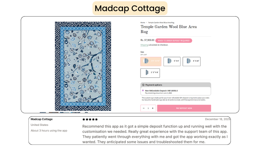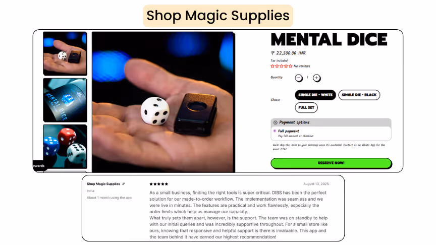 Using the Dibs app, you can offer full payments, partial payments and book now, pay later options. This offers your buyers an added advantage to preorder your product.