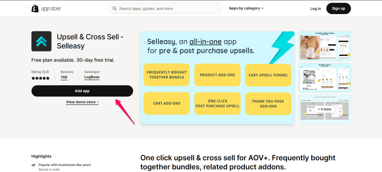 Showing related products is much easier if you use a Shopify related products app like Selleasy. It allows you to add related products in one click. With Selleasy you add related products in the product page, cart page, Post purchase page, and Thank you page. To add related products using Selleasy, follow the below steps: