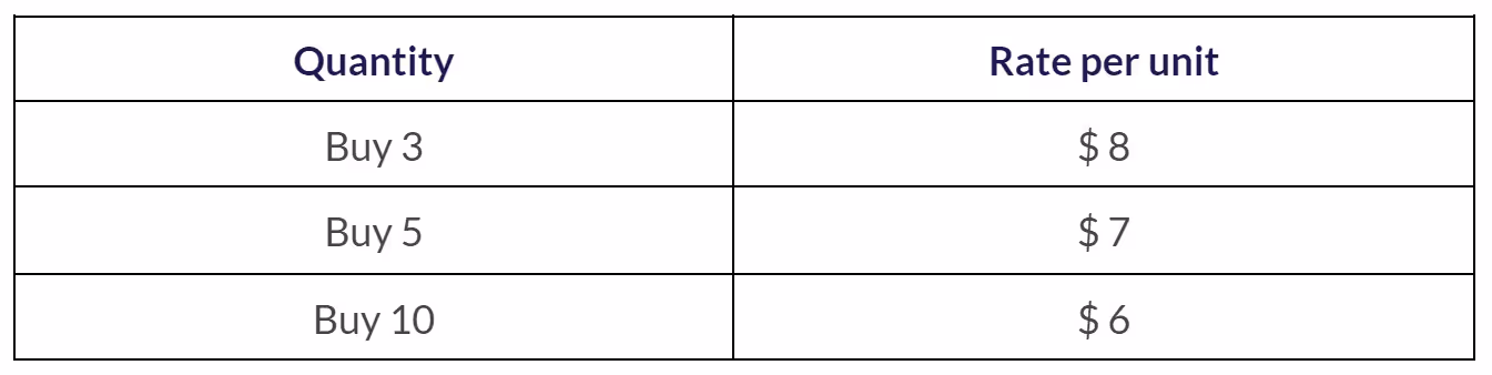 This is how a tiered volume discount can be offered to your customer through tiers: