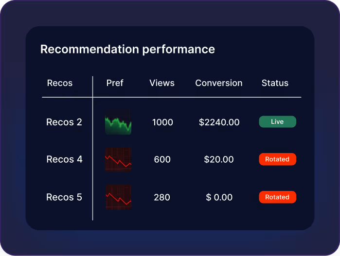 Automatically rotates non-performing recommendations based on analytics.